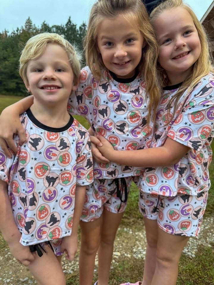 Sweeten up spooky season with our Halloween Sugar Cookie Lounge Set! This cozy 2-piece outfit features a playful sugar cookie print with festive Halloween designs in warm fall colors. Available in kids’ sizes and a matching mom set, it’s perfect for coordinating family looks, pumpkin patch outings, or snuggly nights in. A fun and comfy way to celebrate the season together!