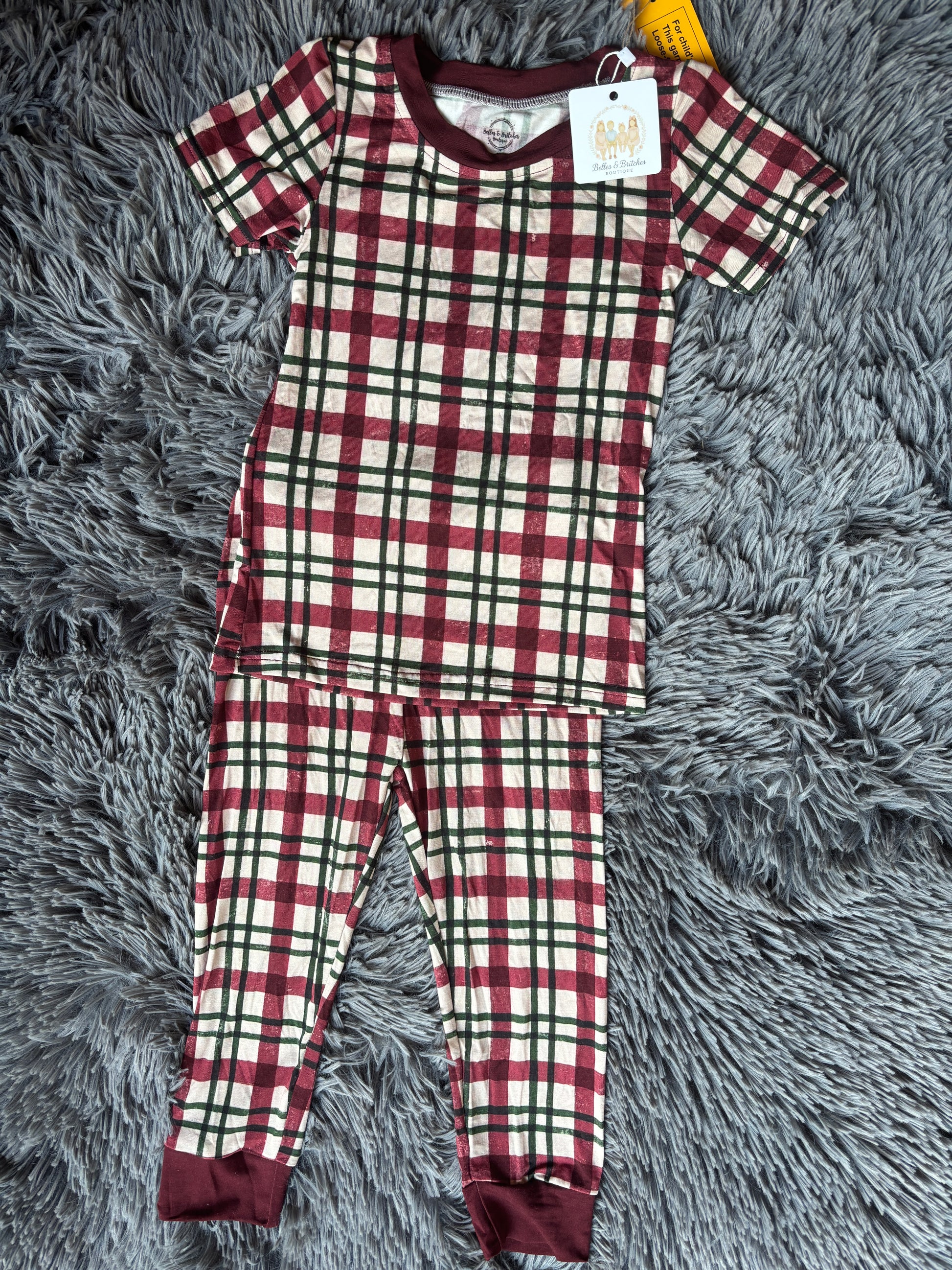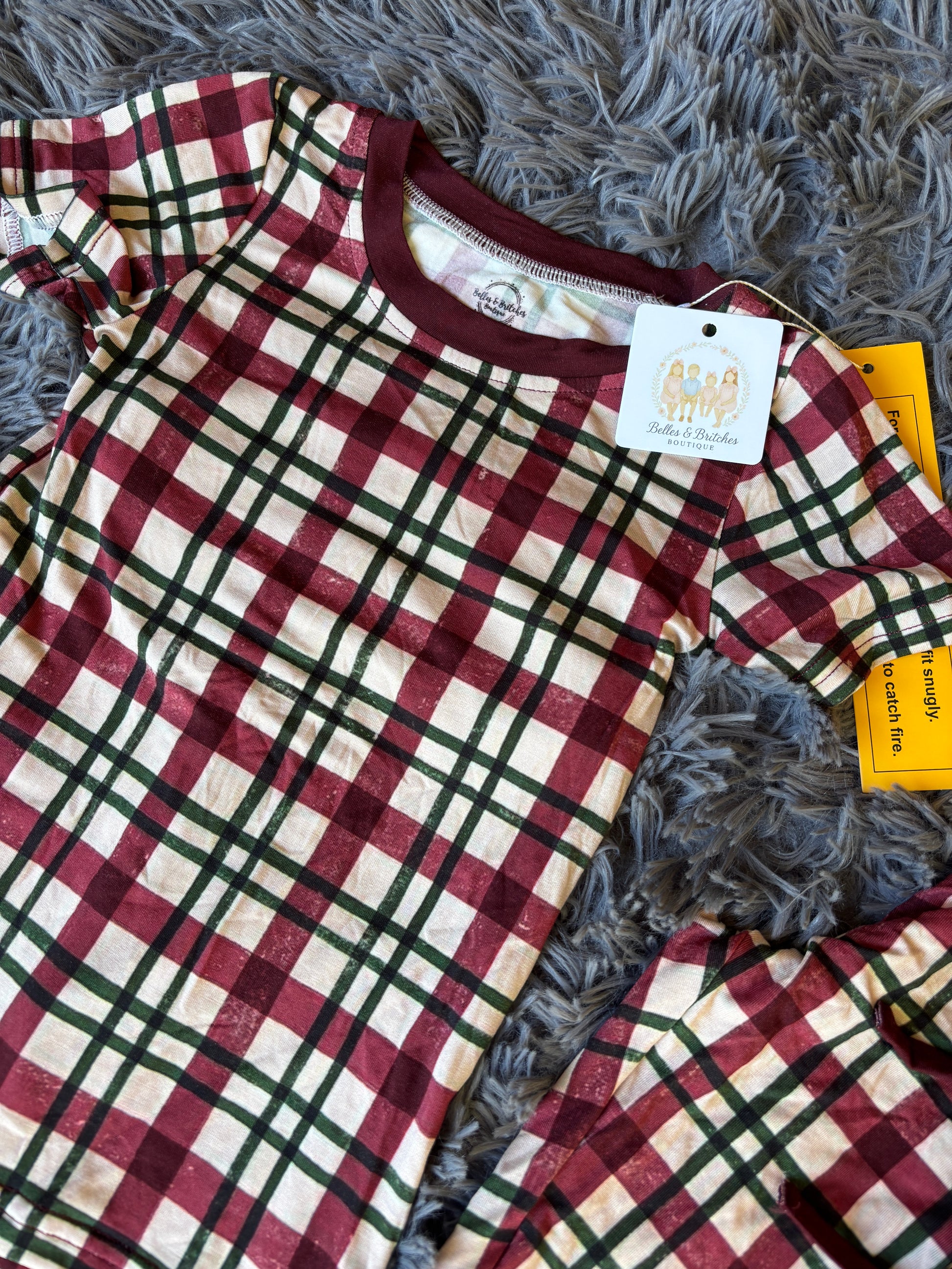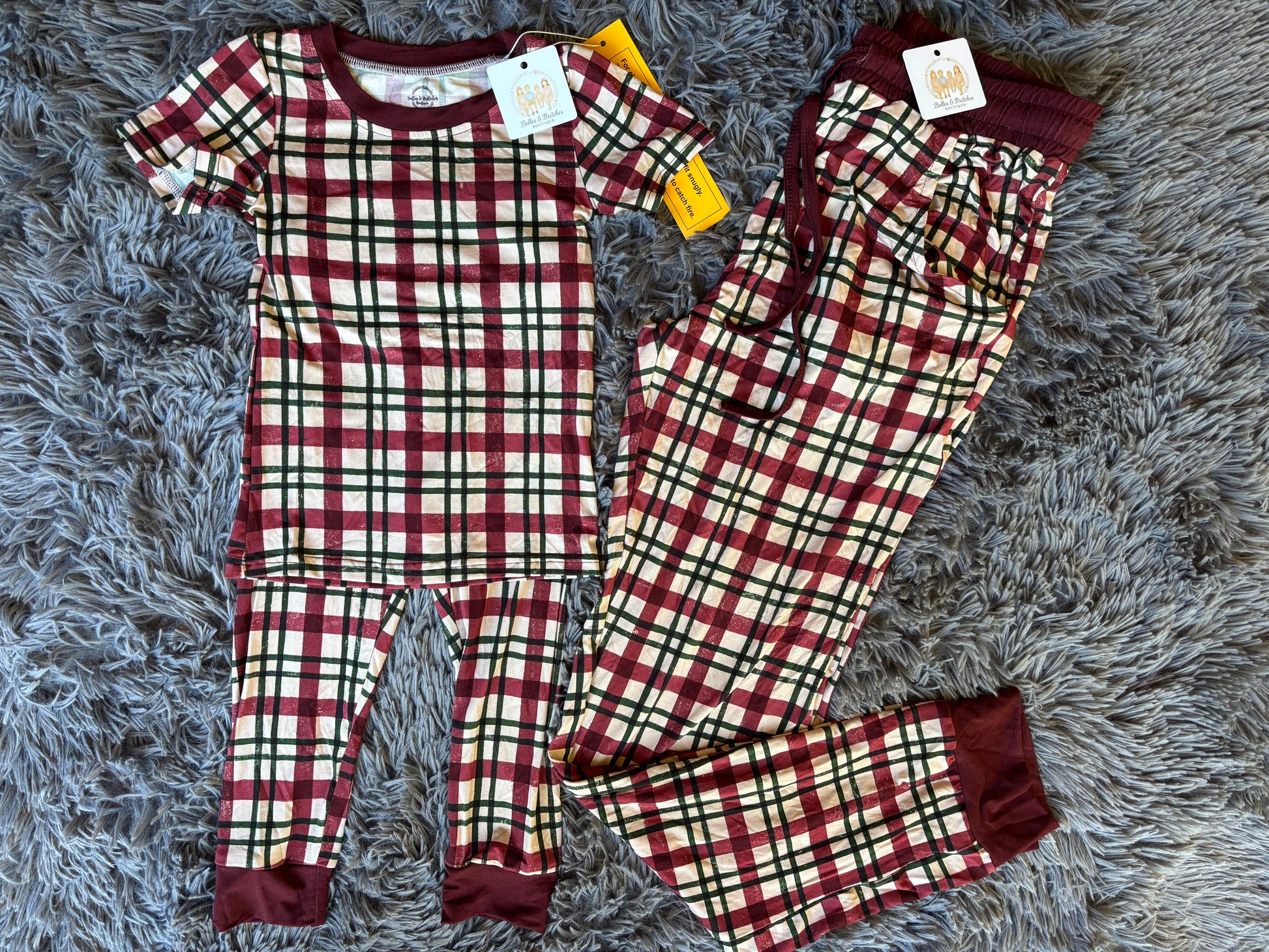 plaid Christmas pajamas, holiday bamboo set, unisex kids holiday outfit, adult Christmas joggers, red and green plaid pajamas, cozy family Christmas clothes, bamboo kids and adult holiday set, classic holiday pajama set, festive plaid sleepwear, winter family matching pajamas
