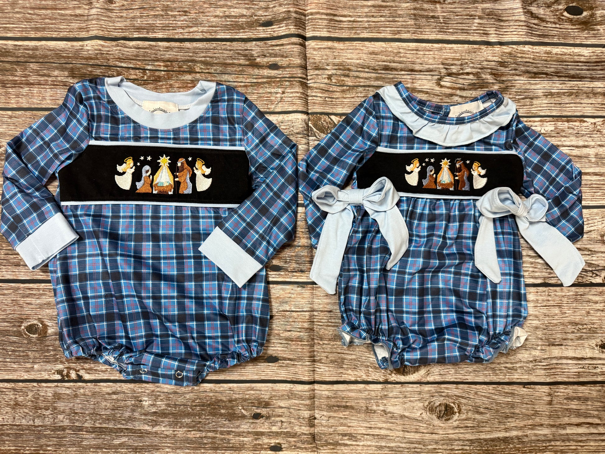 The stars have never shined so brightly than the night Jesus was born! Spread the message and help to remind all of the reason for the season in this most beautiful matching set. With a gorgeous shade of blue and coordinated plaid, "O Holy Night" is sheer perfection!
