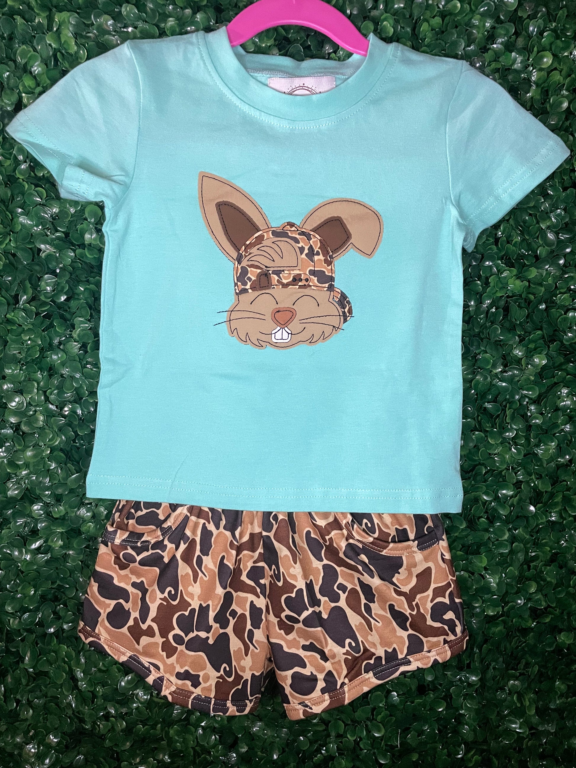 boy outfit, toddler hunting clothes, bunny appliqué shirt, camo hat shirt, outdoor kids clothing, adventure outfit, boys spring set, toddler casual set, hunting theme clothes, nature play clothes, boys camo shirt, Easter, holiday