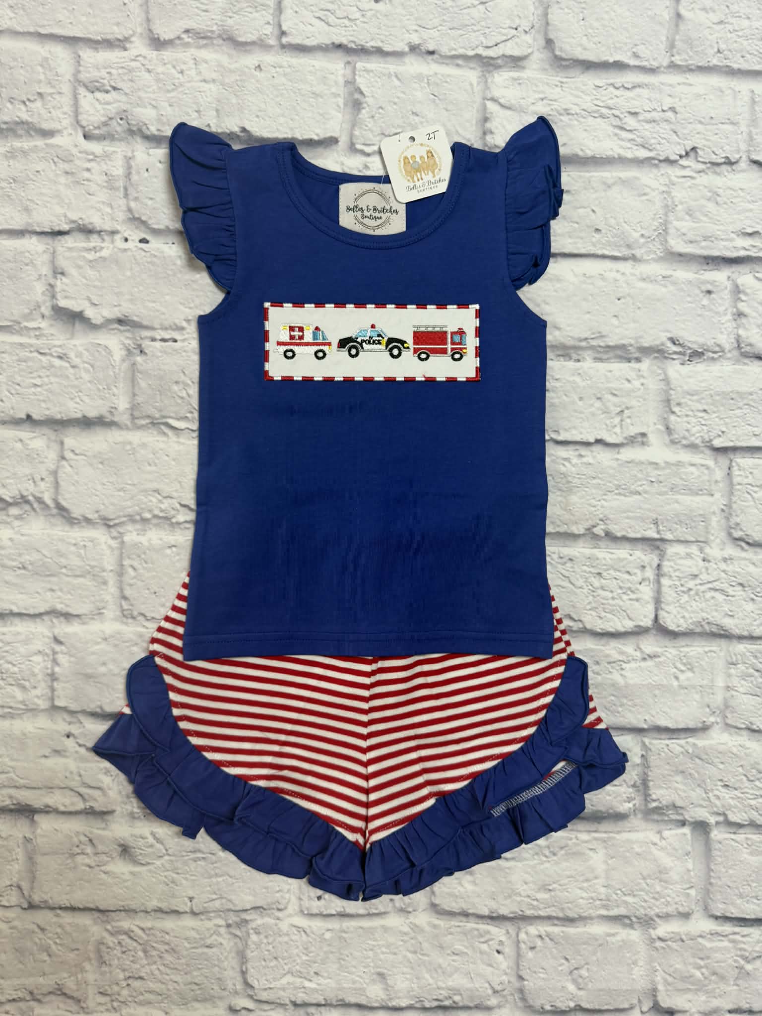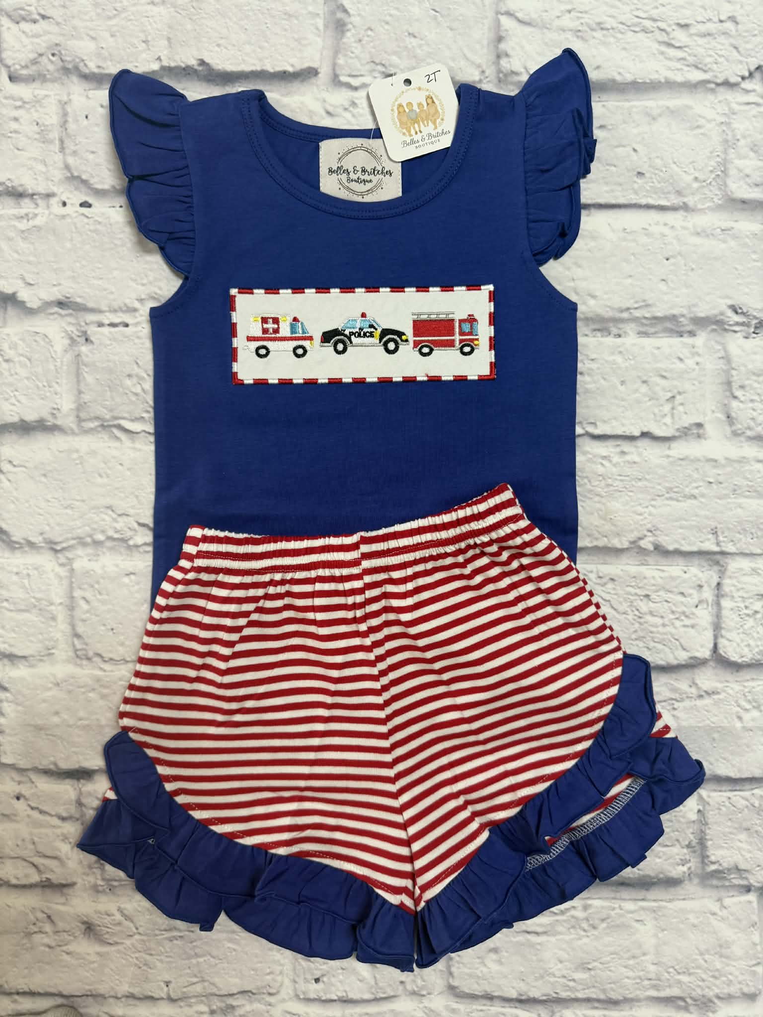rescue vehicle outfit, boys boutique short set, girls boutique short set, sibling matching outfit, ambulance applique outfit, fire truck applique outfit, police car applique outfit, kids rescue outfit, toddler boy outfit, toddler girl outfit, boutique kids clothing, boy girl matching set