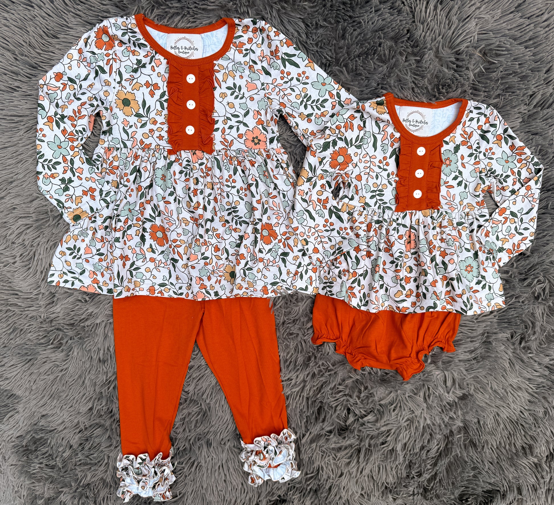 wild about fall outfit, sister matching fall outfits, girls fall floral set, rust fall boutique outfit, toddler girl bloomer set, girls ruffle pants set, fall sibling outfits, boutique fall clothes for girls, floral fall matching set, baby girl fall outfit, toddler fall fashion, sister fall collection